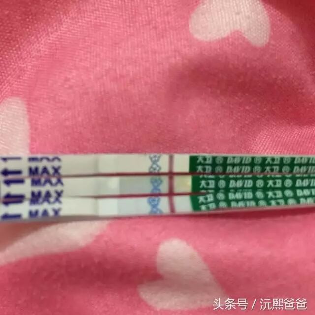 就这样沮丧的过了五天,我的大姨妈还是没有来。因为我是排卵以后的第十四天百分百会来的,自己抱着忐忑的心情又试了一张试纸,居然让我看到了两条杠,一条很浅很浅的粉红色。