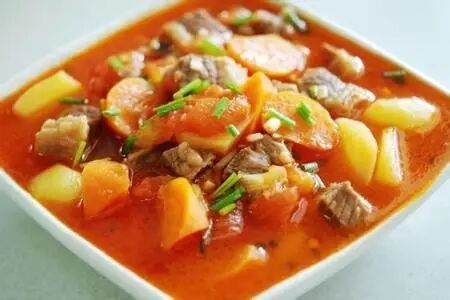 材料:牛肉500克,番茄500克,土豆(黄皮)500克,洋葱(白皮)100克,调料:盐5克,姜5克,植物油25克