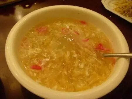 材料:虾仁150公克,花枝浆150公克,鱼翅羹汤适量,香菜叶少许,盐1/2小匙,白砂糖1/4小匙,蛋白1/2个,太白粉15公克,胡椒粉1公克,香油1小匙