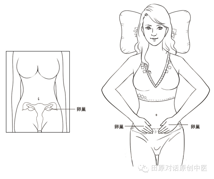 (1)双手手掌沿着两侧腹股沟的上方,也就是大腿和腹部连接的部位(里边正对着卵巢),轻缓按摩。让手掌的热量逐渐渗透,会有暖流注入的轻松感觉。按摩7或9次。