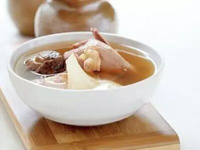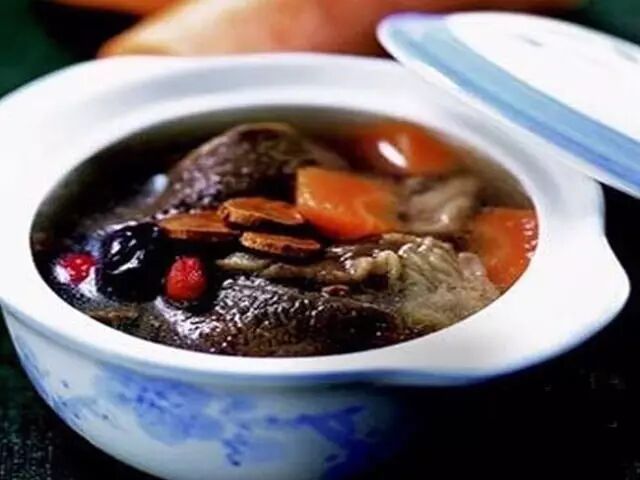 做法:肉与药材同时加入1200毫升清水炖汤,加入适量的食盐食用。