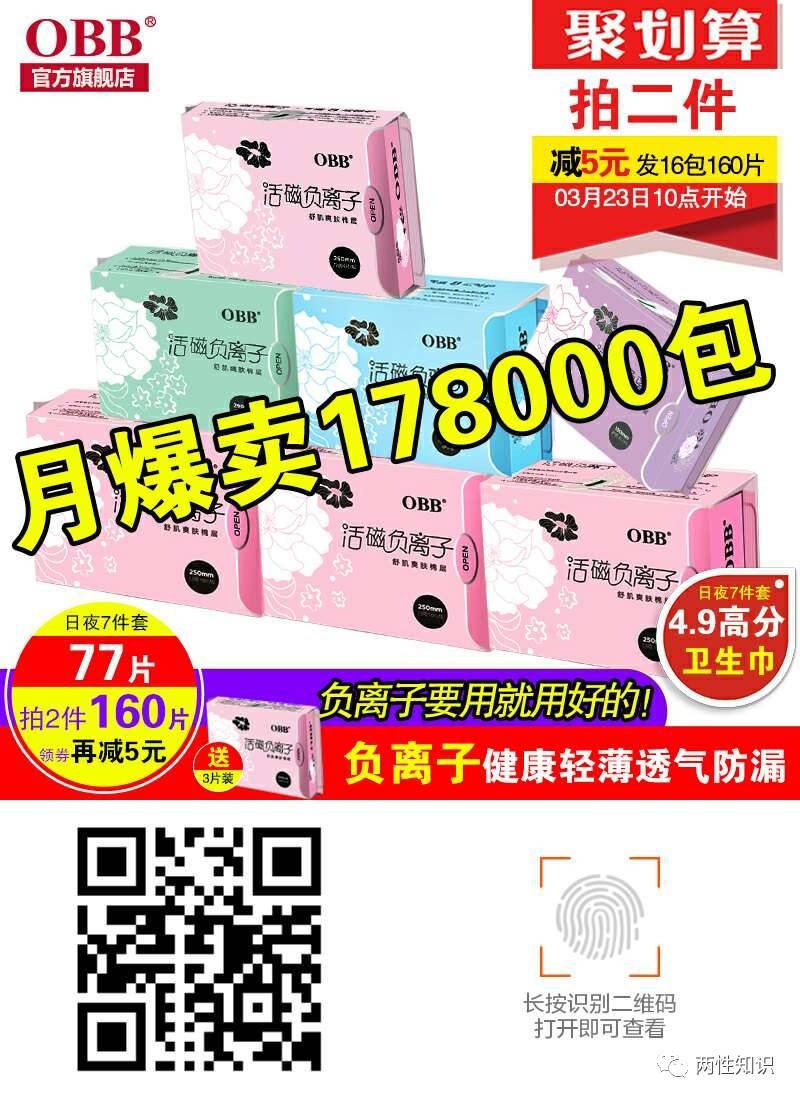 负离子超薄防漏无荧光剂棉姨妈巾: