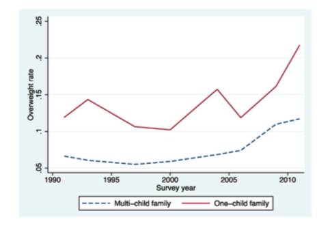 这是第一篇试图探讨计划生育政策与中国儿童肥胖之间因果关系的文章。在儿童肥胖现象伴随着经济增加日益增加的当下,作者在本文提供的视角和研究结果都值得公众和政策制定者关注。