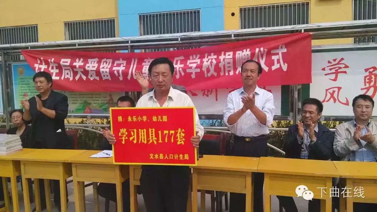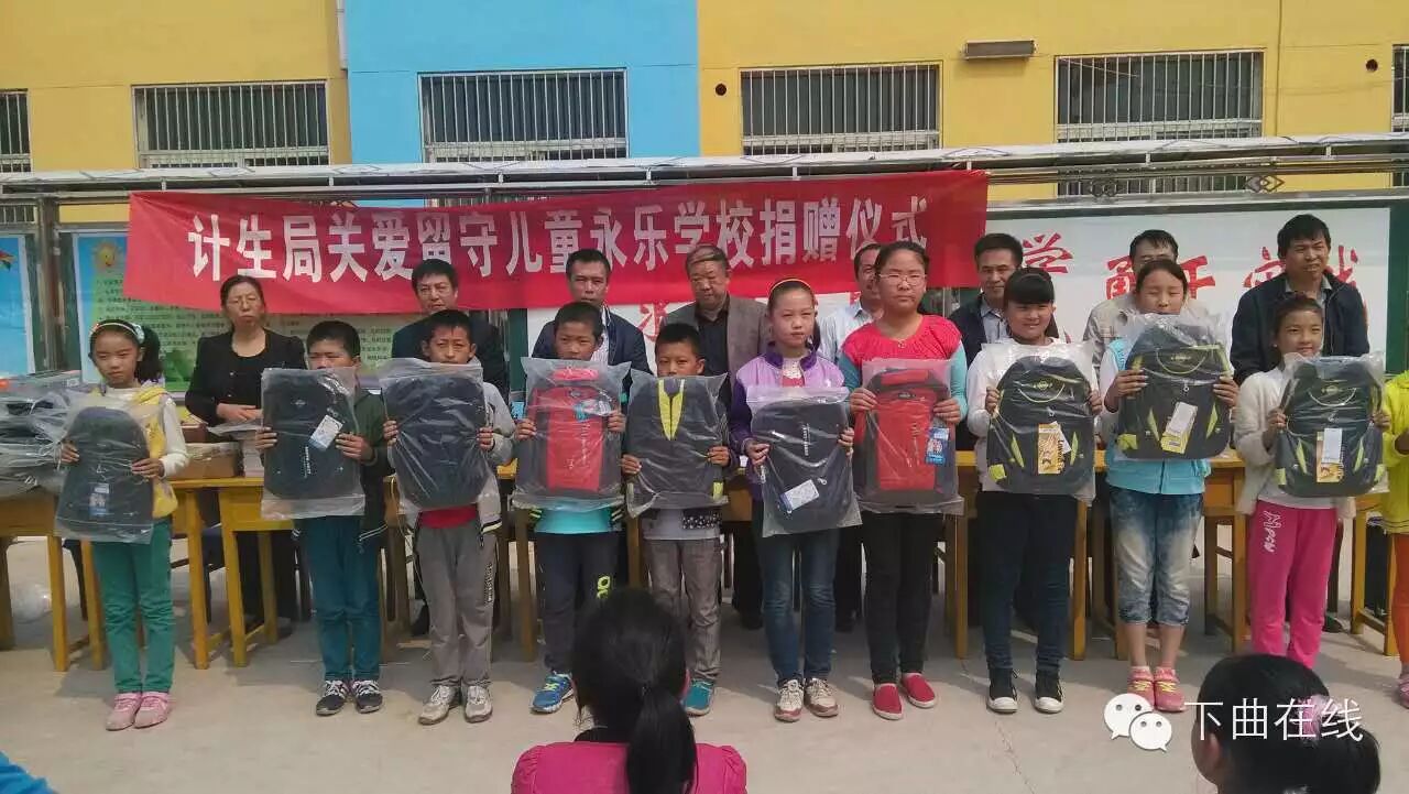今天,在永乐村小学,县人口与计划生育局向永乐村留守学生献爱心,共捐赠177套学习用具,包括书包、笔记本、铅笔盒等。镇政府、镇中心教委以及永乐村干部出席了捐赠仪式。