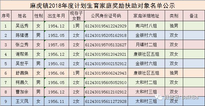 为全面落实计划生育奖励扶助政策,切实解决计划生育家庭面临的实际困难,按照市县计生家庭奖励扶助工作相关规定,经本人申请与村镇审核,初步确定麻虎镇2018年度计划生育家庭奖励扶助对象共9名,现将相关情况予以公示。公示时间为12月1日至12月7日(共7天),在公示期内,对计生奖扶公示对象有异议的,请以口头或书面形式向镇纪委或镇计生办举报,同时,将严格为举报者保密。举报电话:镇纪委0915-7822452;镇计生办0915-7952796。