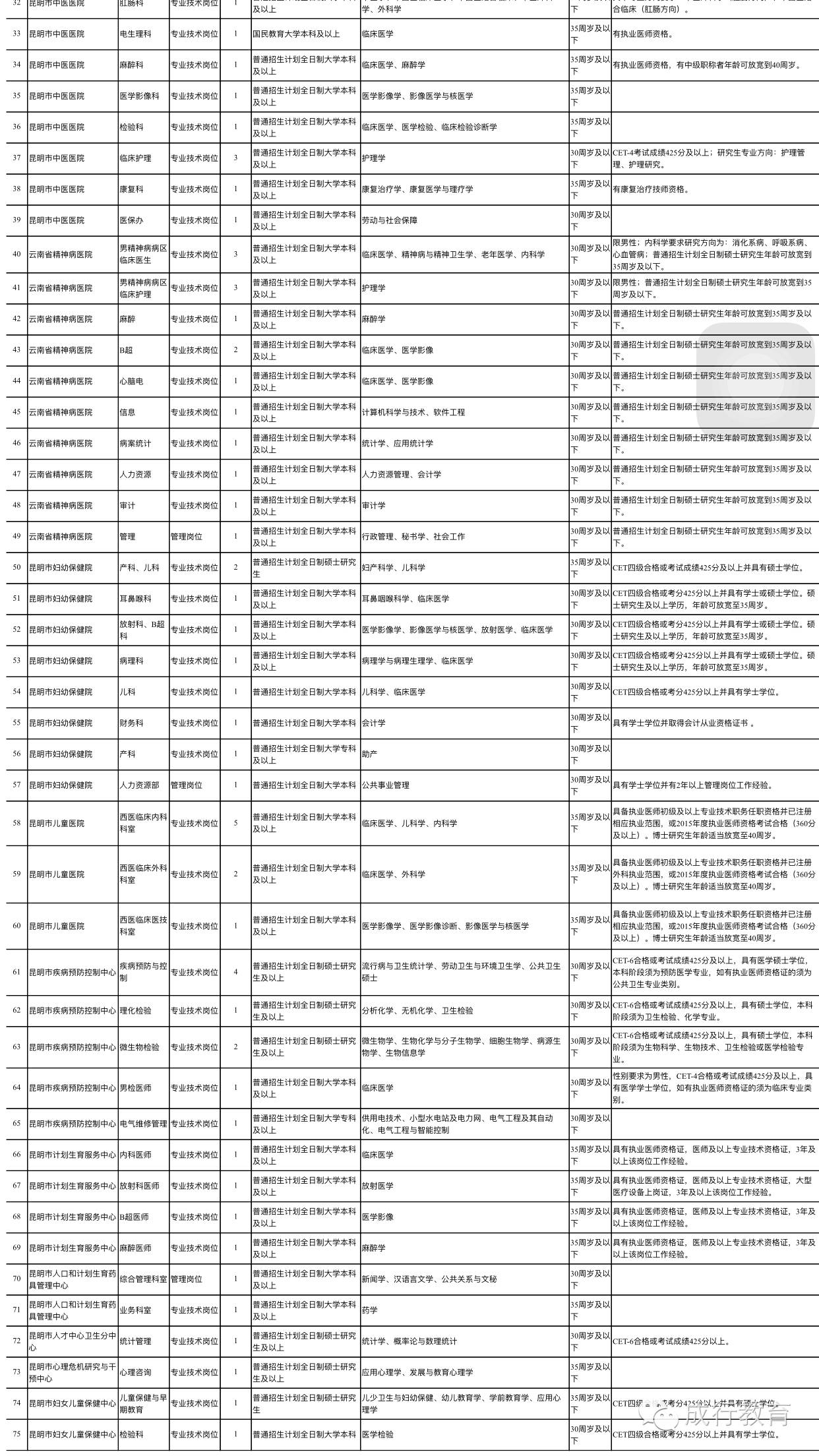 详见《昆明市卫生和计划生育委员会2016年直属事业单位公开招聘工作人员岗位计划表》(附件1)。