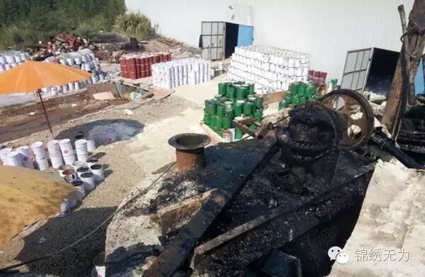 接群众举报后,近日,泾县公安局经侦大队立即会同县环保局、县市场监督管理局执法人员组成联合检查组赶往制假窝点。发现业主金某正在非法生产知名品牌“金马”牌防水油膏,且对空气及周边环境均造成严重污染。公安机关立即会同关执法人员采取果断措施,现场查封假冒“金马”牌防水油膏2吨、用于生产假冒防水涂料的炉子5个、电闸1个。同时,对业主金某予以控制。