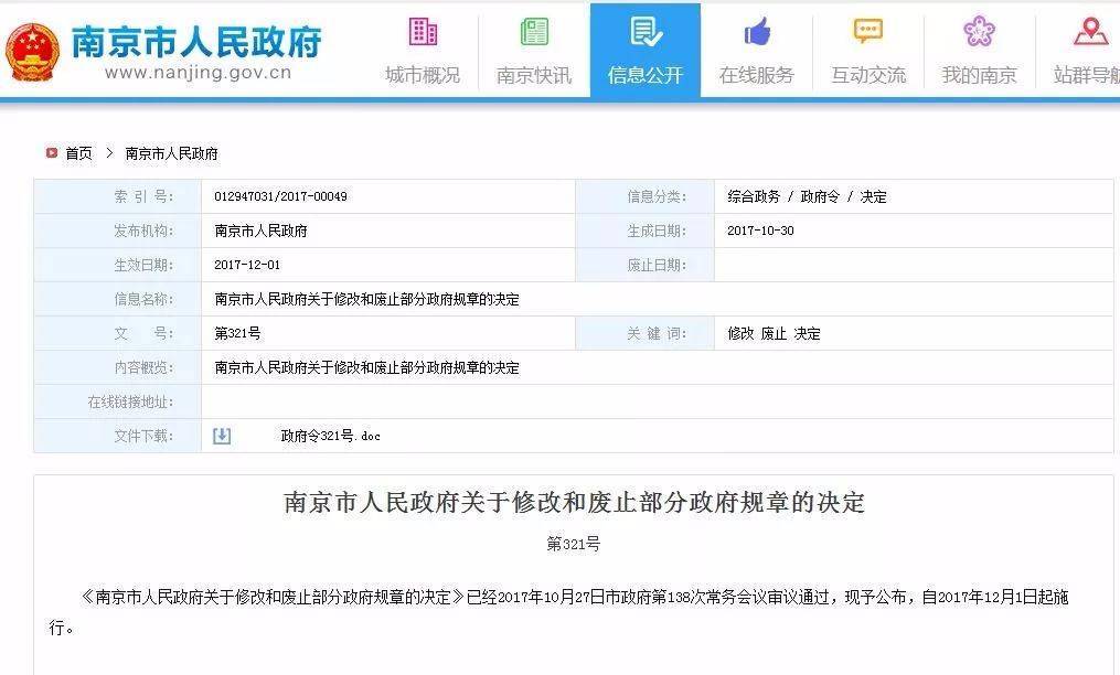 南京政府刚刚公布了,