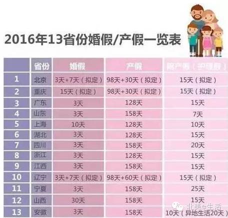 中国呢?根据我国《女职工劳动保护条例》规定,女职工生育享受98天产假,不得在女职工怀孕期丶产期丶哺乳期降低其基本工资。而随着新计生法2016年1月1日起施行,多省产假也发生了新变化。