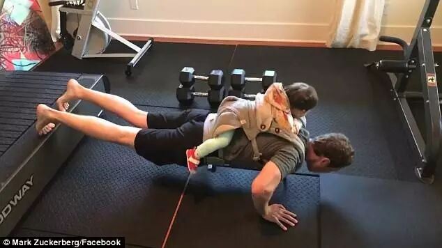 ▼背着女儿健身
