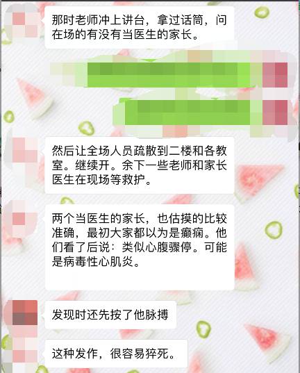尽管在众人的努力给予及时抢救,但事发突然这位突发疾病家长不幸去世,猝死的原因很有可能是心血管方面的疾病导致。