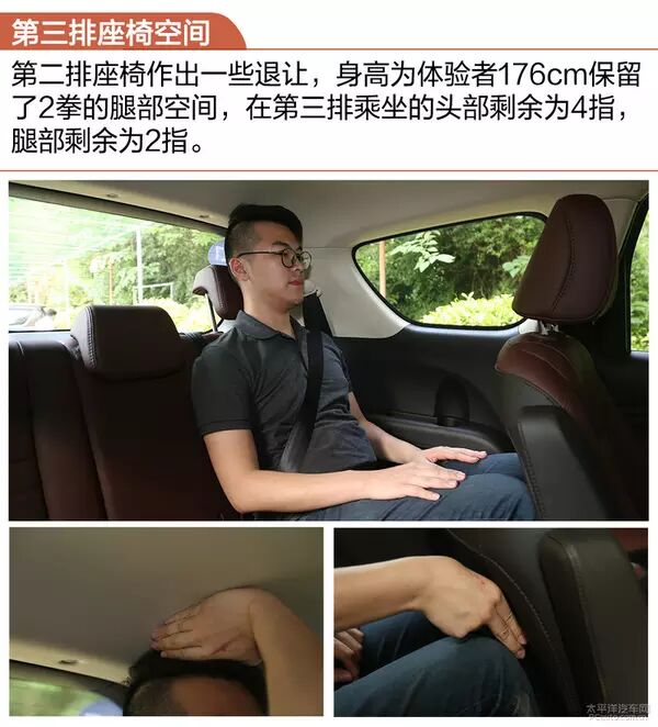 在车身尺寸方面,轩朗的长宽高分别是4720/1840/1665mm,轴距则是长达2780mm,很好地满足车内7人乘坐,如身高1米78的体验者在第一排及第二排都能获得不错的乘坐体验,而在第三排,头部空间还可以有三指左右,表现可以说非常不错。