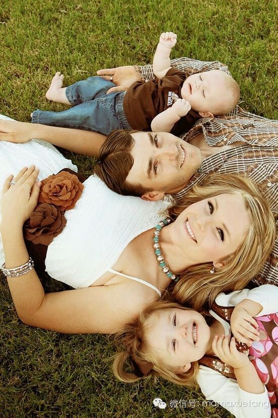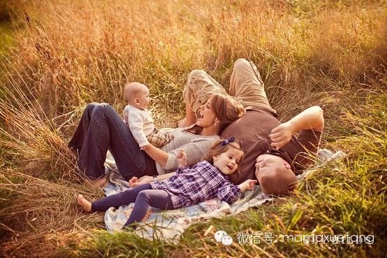 坐在草地上有一款非常简单又很经典的pose,就是这款!爸爸妈妈背靠背!