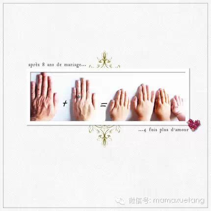 爸爸+妈妈=我们!照片上是四个宝宝,二胎家庭换成2只小手一样很赞哦!
