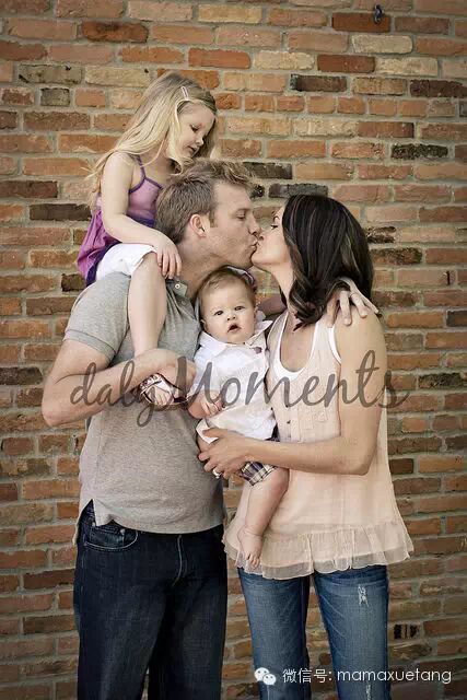 还是那句话,没什么事情干的话,就亲吻吧。爸爸妈妈的kiss最浪漫了!可以把宝宝挤在中间。
