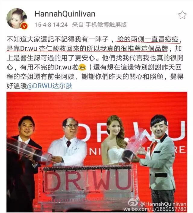 天王嫂原话是这么说的:DR.WU真的很适合婚前密集保养,让我的肌龄永远停留在20岁。