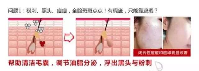 帮助角质的代谢,消炎杀菌,促进细胞更新,从而改善皮肤的闭口、痘痘、色斑、光老化等问题。