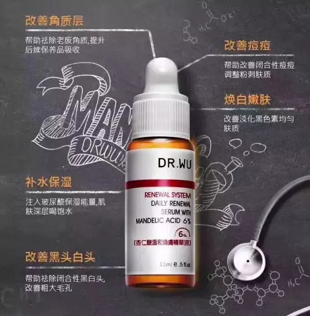DR.WU达尔肤杏仁酸堪称“酸界大佬”,采用的都是德国默克药厂高纯度杏仁酸。