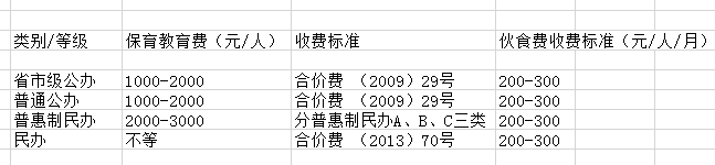 按照洛阳地区幼儿园的收费标准