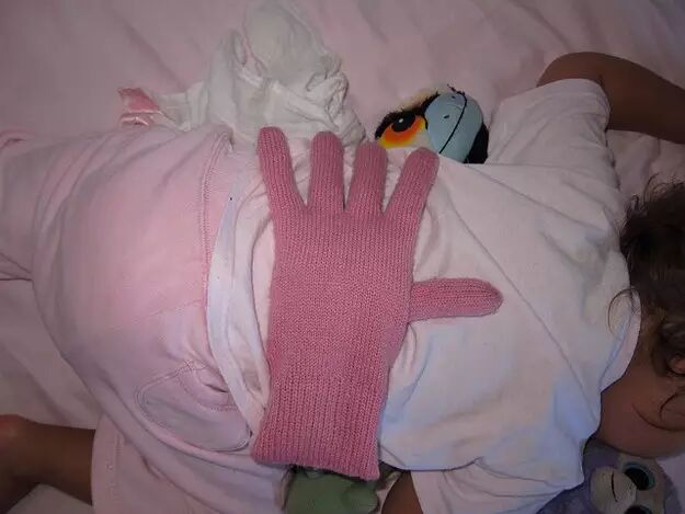 把手套里缝上豆子,睡觉前拍拍孩子然后留下手套,你就可以去睡觉啦,他们以为你一直都在呢。