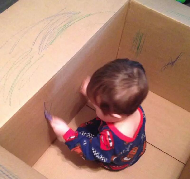 一个人在家分身乏术,熊孩子到处跑还画墙?告诉你一个小妙招,一把水彩笔蜡笔加一个大纸箱子,让他们安静地艺术创作吧。
