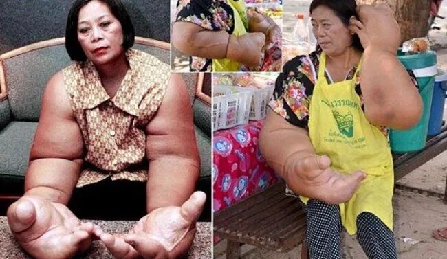 这位女子来自泰国,你可以看到她的两只大手与正常人区别很大,原来她在8岁时得了一种怪病,从而让她手大了好多倍。她寻医问药已经20年过去了,但到现在仍没有一个好的治疗方法,医生建议她把自己的手臂切除,但是她没有放弃。对于她来说,晚上睡觉就有难题,因为手太大,基本难以翻身,让她很是烦恼。生活中穿衣、吃饭等活儿对于普通人来说,太简单了,但是她几乎不能独立完成。她希望有那么一天,科技发达了,从而可以治好她的病。