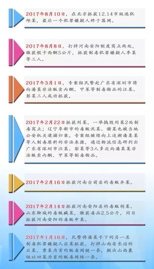 目前,已抓获遍及全国九省十四市的犯罪嫌疑人15名,缴获毒品200余千克,缴获毒品半成品300余千克,创山东潍坊一次缴获甲卡西酮毒品数量历史之最,对全国毒品制造、贩卖网络给予了强有力的一击。