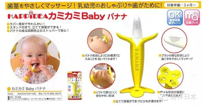 日本 KJC香蕉型婴儿牙胶 3个月以上 医用级硅胶HAPPiDEA