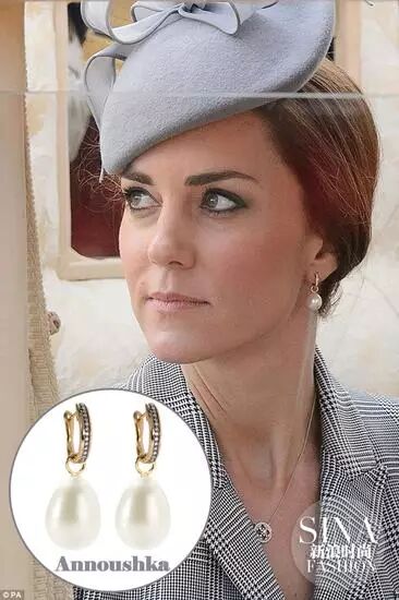 装饰这一身行头的除了那颗著名的蓝宝石订婚戒指外,还有一对同样来自英国本土品牌Annoushka的珍珠耳环,价值1090英镑(合约10750元人民币),耳钉部位由黄金打造,并镶有18克拉钻石,这对优雅的珍珠耳环是凯特最爱的首饰,她曾多次在各种场合佩戴。
