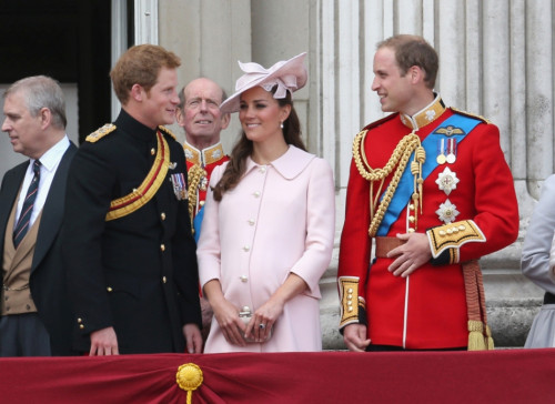 2013年6月15日参加伊丽莎白女王生日阅兵式,身穿粉色Alexander McQueen大衣。
