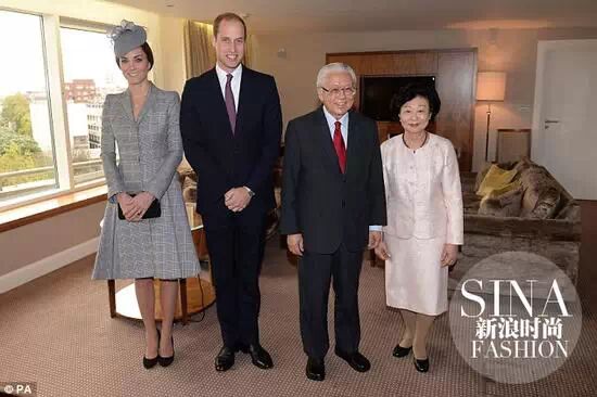 昨日,凯特王妃同威廉王子一起,在白金汉宫出席迎接新加坡总统陈庆炎及夫人到访活动,目前怀孕13周的凯特看上去精神抖擞,一身非常英伦风的灰色威尔士 亲王格大衣裙来自英国品牌Alexander McQueen,头上戴着的灰色帽子来自Jane Taylor品牌,随身携带的手拿包则来自英国品牌Jenny Packham 2014秋冬系列,脚上的黑色麂皮高跟鞋来自英国鞋履品牌Russell & Bromley。