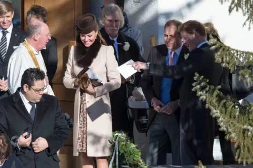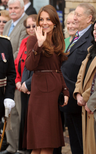 2012年12月6日离开爱德华七世医院,正式宣布她怀孕的消息。她身穿Diane von Furstenberg海军蓝大衣,搭配Aquatalia黑色长筒靴和一条紫色围巾。