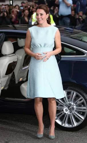 2013年4月24日出席国家肖像画廊活动,首次公开穿着孕妇裙,蓝色连衣裙由设计师Emilia Wickstead设计。