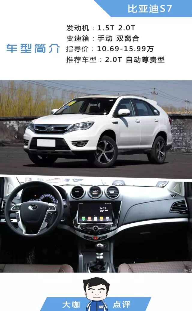 相较于比亚迪之前的产品而言,S7的进步可以说是非常明显的。升级版车型带来的配置不少,其中行车记录仪和后排空调出风口最实用,前者保证安全行车依据,后者保证后排乘客的乘坐体验,而且从S7第三排的表现来看,依旧是具备一定的实用性。2.0T动力表现出色,配置丰富,空间够大,S7确实是一台性价比高的家用7座SUV。