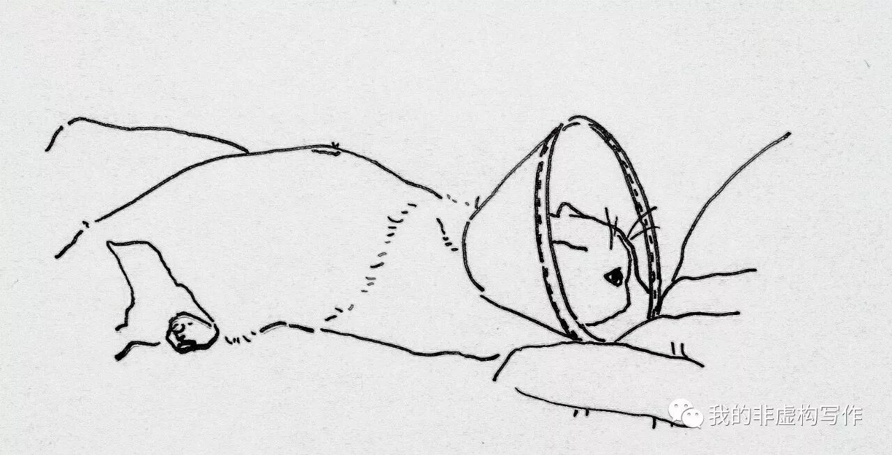 做了绝育手术,花卷被裹的似个五花大绑的咸肉粽,不敢看,有些锥心。