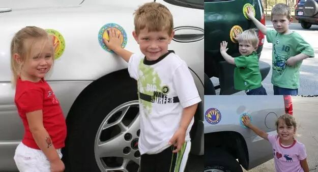 在车上贴上这样的贴纸,当你需要孩子不要乱跑的时候,告诉他们玩个游戏,一直按住自己的那个点