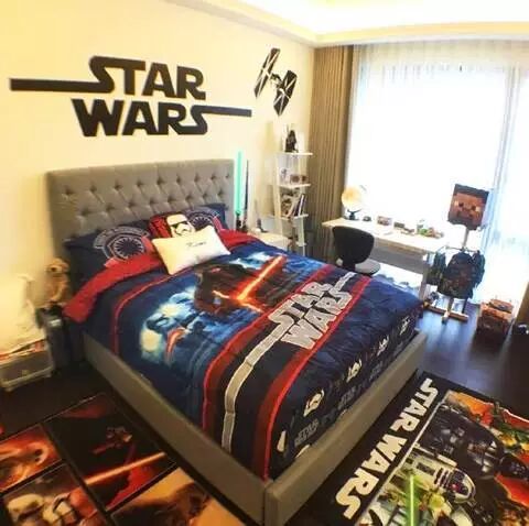 把床单、地毯、墙壁都换成了《星球大战》风格