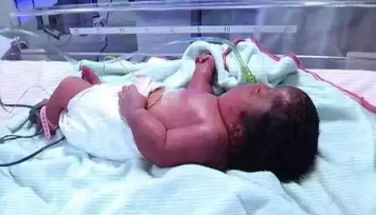 孩子出生后就被送到新生儿重症监护室,照片是他探视时拍的。