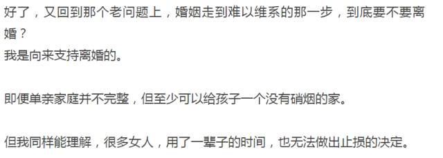 后来吵不动了,就各过各的日子,心照不宣似的,她不过问他在外面的事,他呢,每周依然回家两次,还会给妻子孩子生活费。