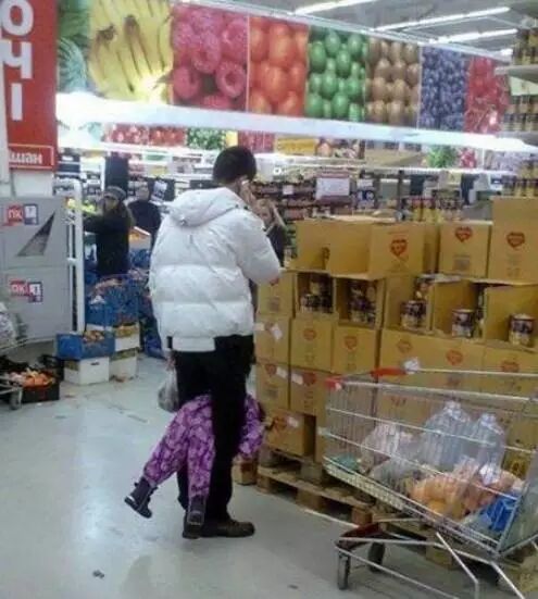 乖孩子,我和你妈先逛着,你帮忙拿下东西先~