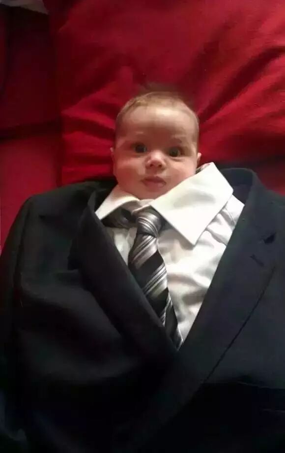 别不开心了,爸爸把最贵的西装都借你穿了…
