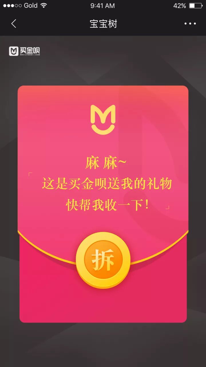 进入活动H5(阅读原文),点拆红包,即可免费领取随机克重的黄金红包+688元买金红包。(不限妈妈,新手皆可参与)