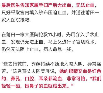 这名妈妈叫陈秀燕,来自莆田市仙游县山区乡镇。这次她怀的是二胎。由于前置胎盘,怀孕35周时,她出血,在莆田某医院住院保胎。
