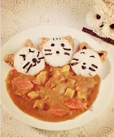 猫咪饭团超萌!还用用胡萝卜雕了两条小鱼。