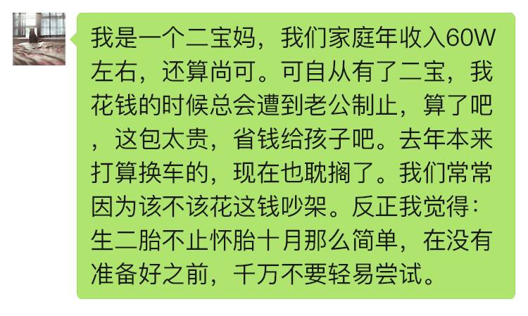 两孩很美好,但多个孩子毕竟不是只加副碗筷那么简单啊:女人怀胎十月的艰辛,照顾婴儿的疲惫,喂养教育的困扰,加上家庭经济压力的增加,甚至会带来夫妻关系的如履薄冰……