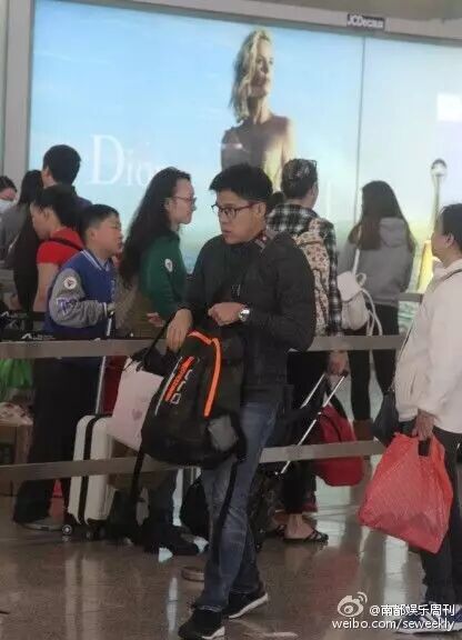 一家三口出行,晶晶负责贴身照顾儿子,霍启刚只要默默在后面做妻儿的“搬运工”。