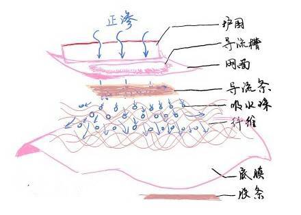 很明显,血液被姨妈巾吸收得越快,皮肤就会觉得越舒服。这个吸收速度也就是液体的渗透速度、渗透是由一系列结构协作完成的,和导流条以及吸水珠有直接的关系。