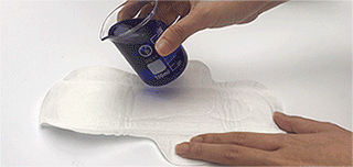 吸水材料用的是日本住友高分子吸水珠珠(SAP),它的吸收能力比绒毛浆、吸水纸更胜一筹。再来个横截面,给大家看看吸水珠的吸水过程~