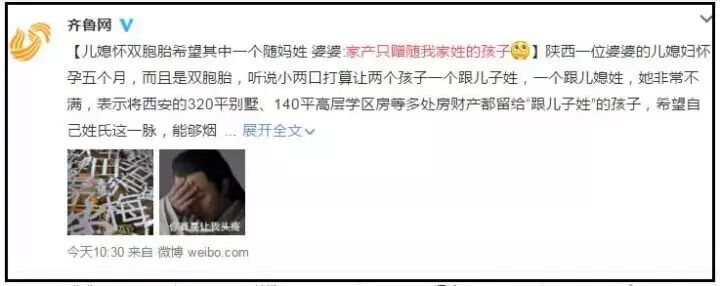 陕西有位婆婆也遇到了这种事,不过她的儿媳妇不是生二胎,而是双胞胎。儿媳妇怀孕已五个月了,听说小两口打算让两个孩子一个跟儿子姓,一个跟儿媳姓。