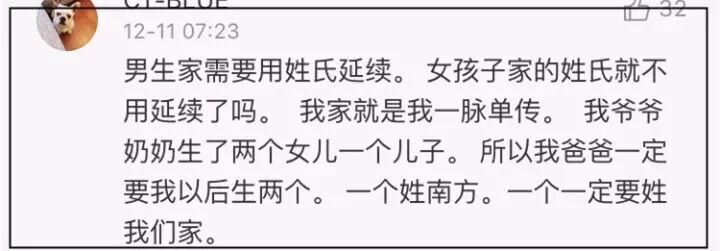 @哈哈一笑很倾城me:深井冰啊 姓氏就一个象征而已 姓谁都是你的孩子 如果你那么重视姓氏 那人家媳妇也重视 人家还想让自己的姓传下去呢 有毛意思
